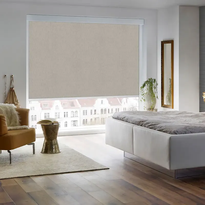 Rollos nach Maß von Decocity: stufenlose Lichtsteuerung, Sichtschutz bis Blackout. Thermo-/Perlex-Gewebe für besseres Raumklima, UV-Schutz gegen Ausbleichen. Platzsparende Montage (Nische, Wand, Decke, Flügel), optional Kassette & Seitenschienen. Bedienung: Kettenzug, Federzug oder Motor/Smart-Home. Viele Farben & Strukturen.